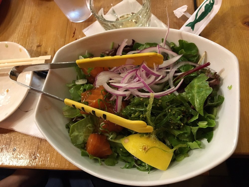 I ordered a pitcher of Sapporo beer and the large order of the chicken karaage (which is their specialty) to share. For dinner, I ordered the poke salad - you can pick from tuna, salmon, or tofu. The menu offers a bunch of Japanese and Japanese-Hawaiian fare, like loco moco